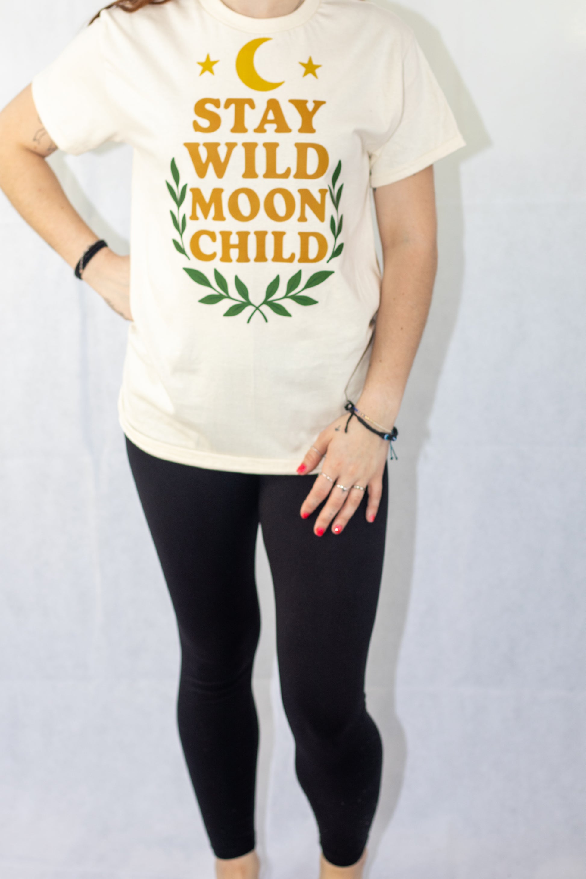Let your spirit roam free in the Stay Wild Moon Child Tee. Made from 100% soft cotton, this unisex shirt blends dreamy comfort with effortless style. Designed for stargazers, daydreamers, and night owls alike, it’s perfect for festivals, firesides, or just vibing under the stars.